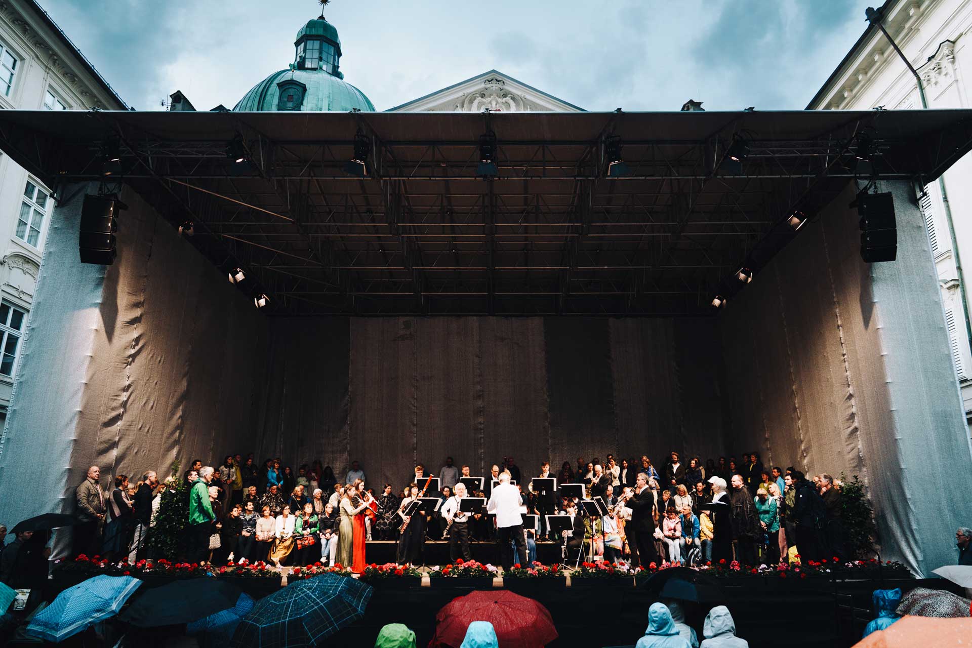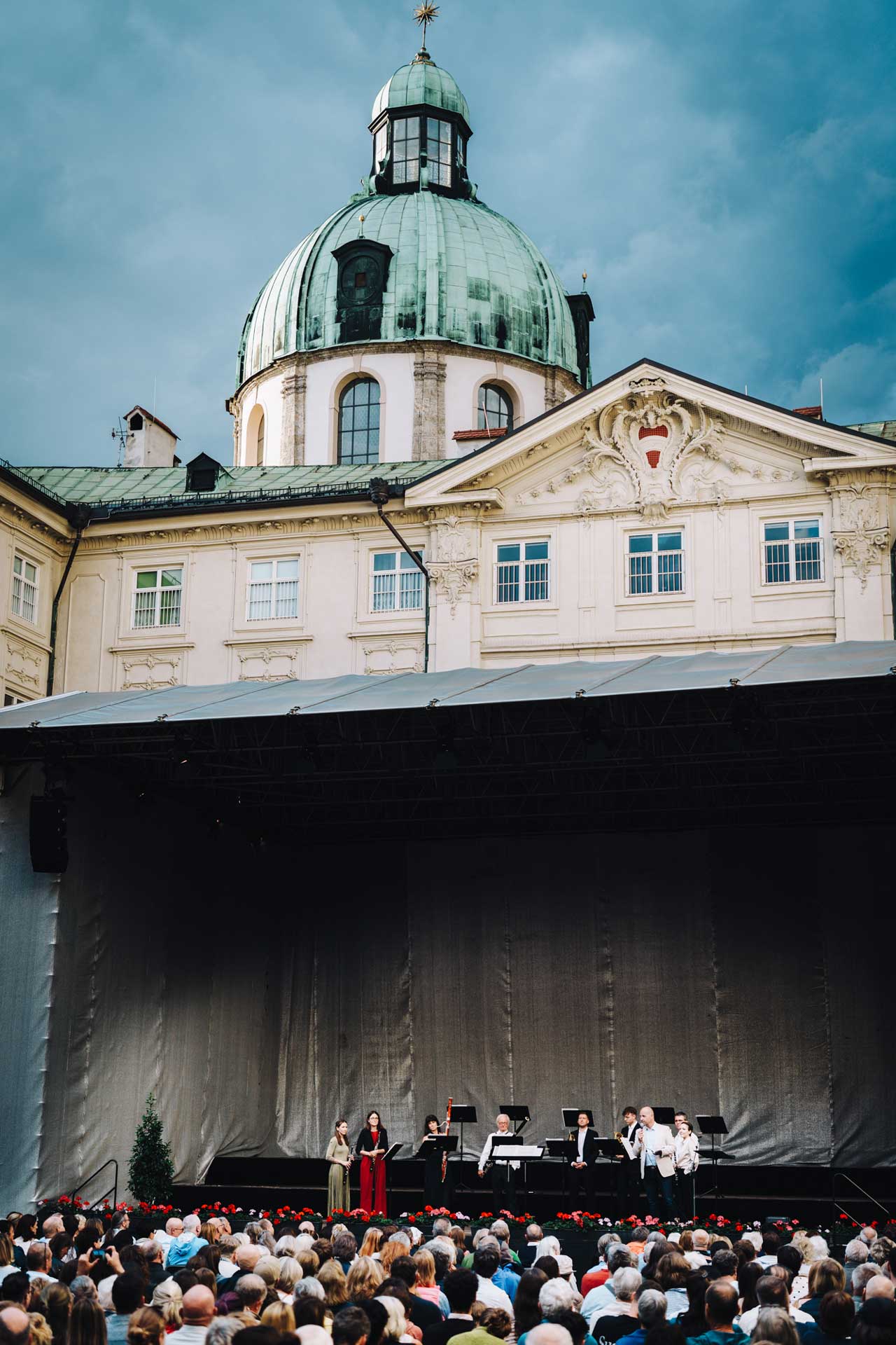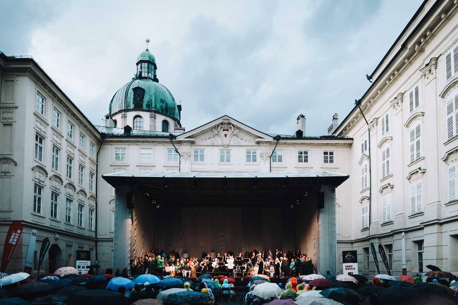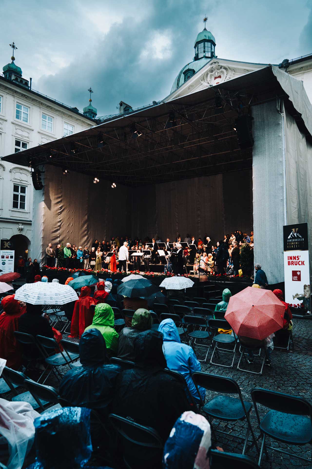 Trotz sommerlichen Regens blieb die Stimmung im Publikum heiter, und die Zuhörer:innen hielten geduldig unter Schirmen aus. Gerade dadurch wurde spürbar, wie stark die Musik verbindet und wie sehr die Besucher:innen den Abend genießen wollten. Die besondere Kulisse der Innsbrucker Hofburg verstärkte das Erlebnis zusätzlich, da Geschichte, Architektur und Musik in harmonischem Einklang standen.