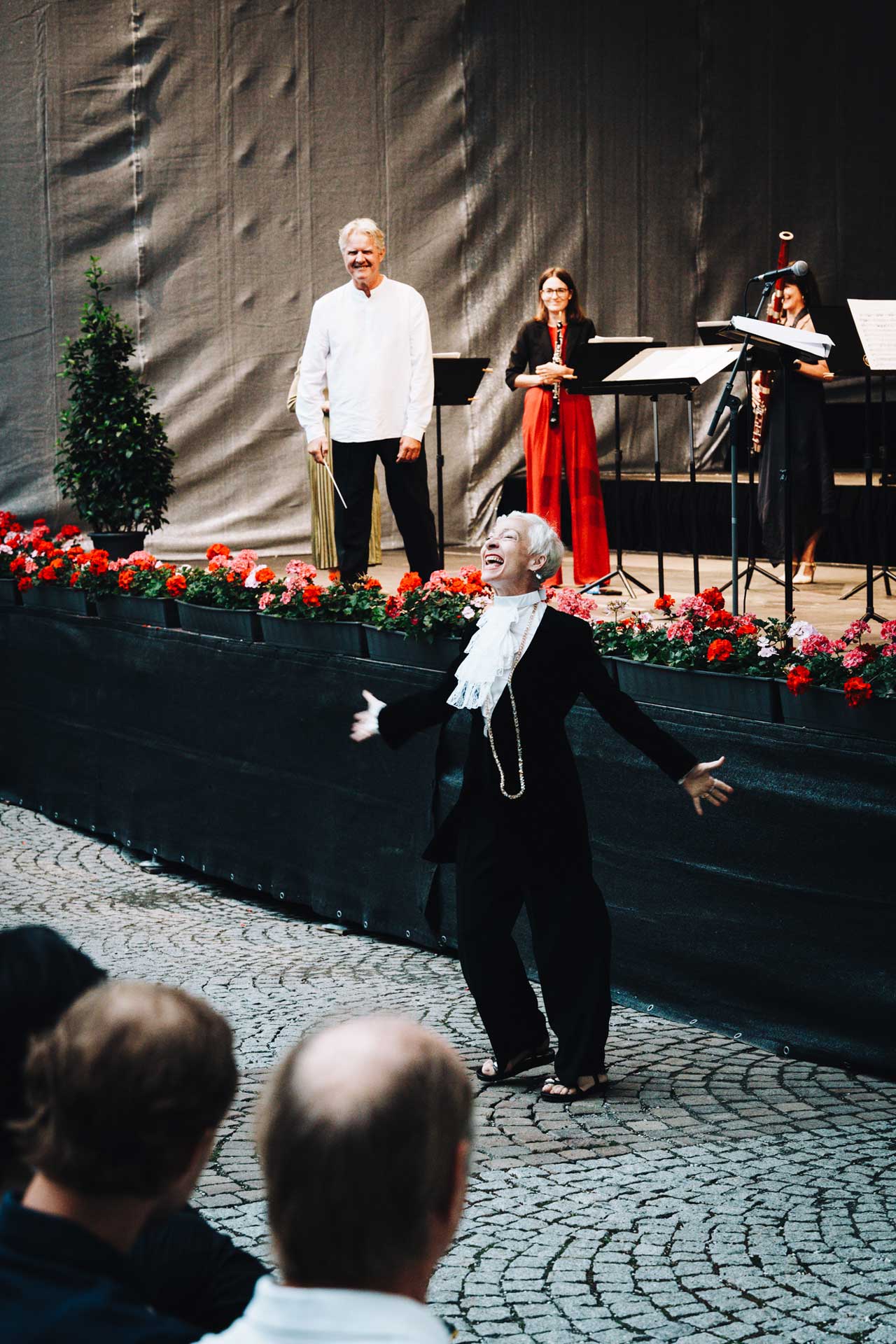 Unter der Leitung von Friedrich Pfeiffer erklangen Werke, die sowohl klassische Eleganz als auch lebendige Dynamik vereinten. Die Oboistin Katharina Kratochwil im grünen Kleid begeisterte mit ihrem strahlenden Ton, während Elena Biosca Bas auf dem Bassetthorn feine Nuancen hervorbrachte. Darüber hinaus verlieh Sona MacDonald mit ihren Rezitationen dem Konzert eine besondere künstlerische Tiefe, wodurch Musik und Sprache in einen eindrucksvollen Dialog traten.